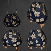 ハンドメイド巾着ショルダーバッグ*ジャガード巾着バッグ*フリル付き巾着*カサブランカ風