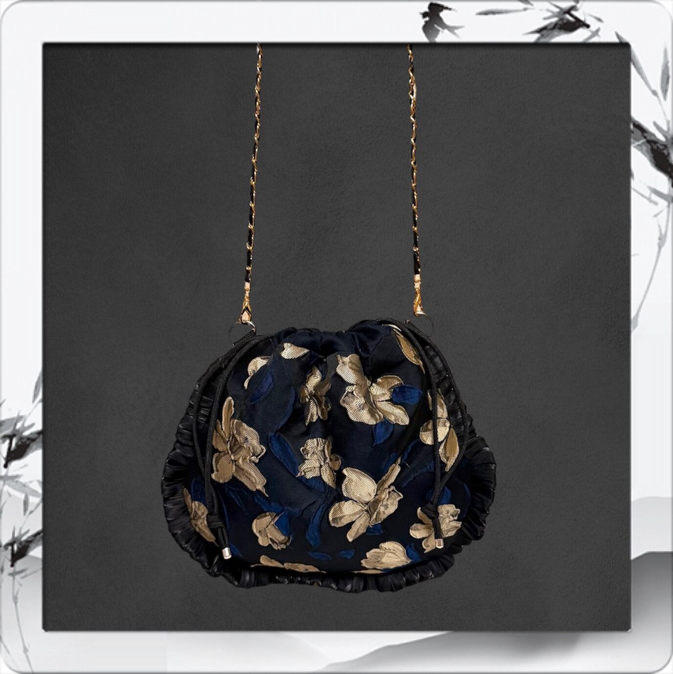 おしゃれでエレガントなフリル付きのジャガード巾着ショルダーバッグ✨