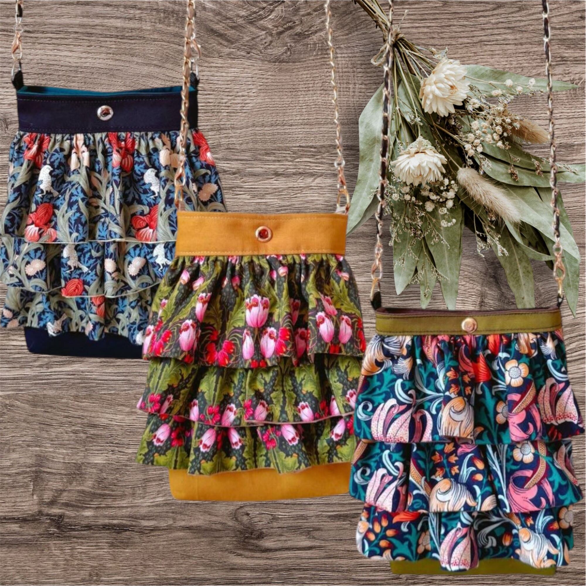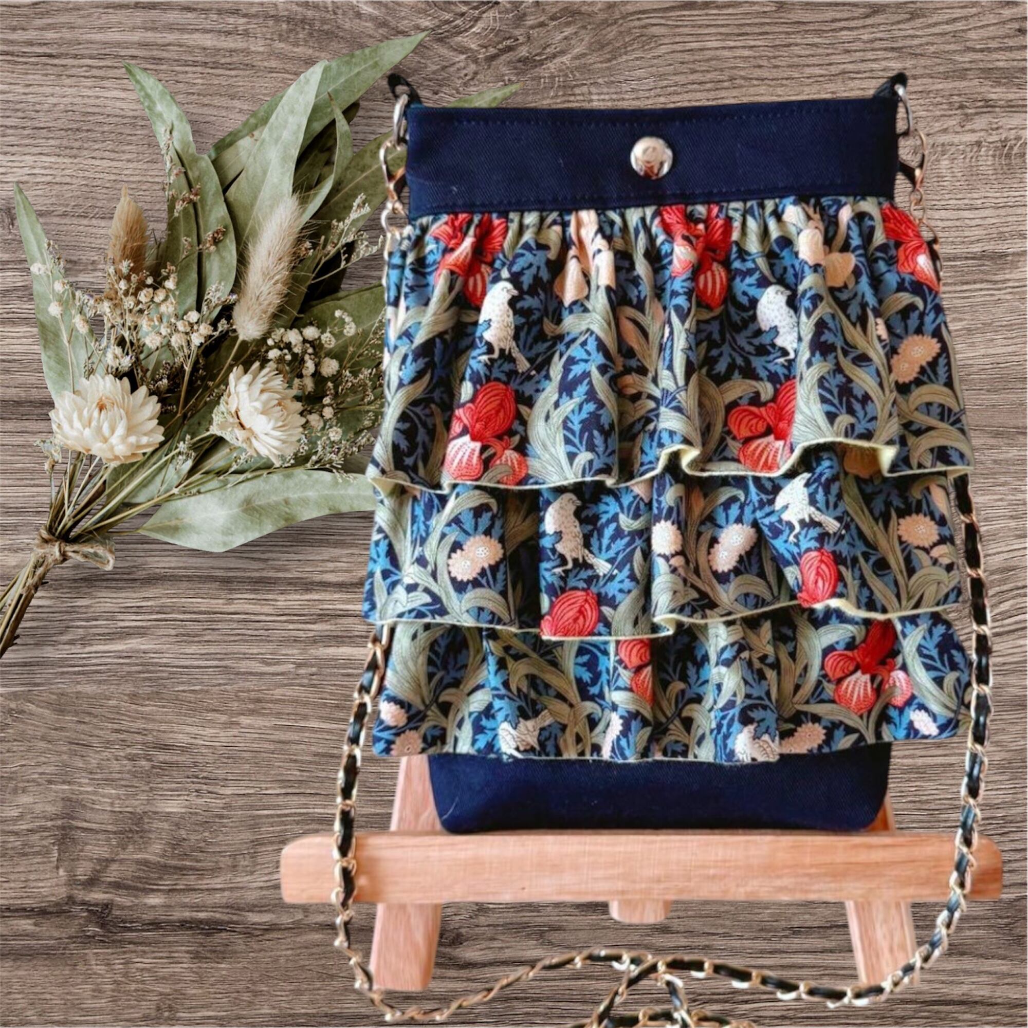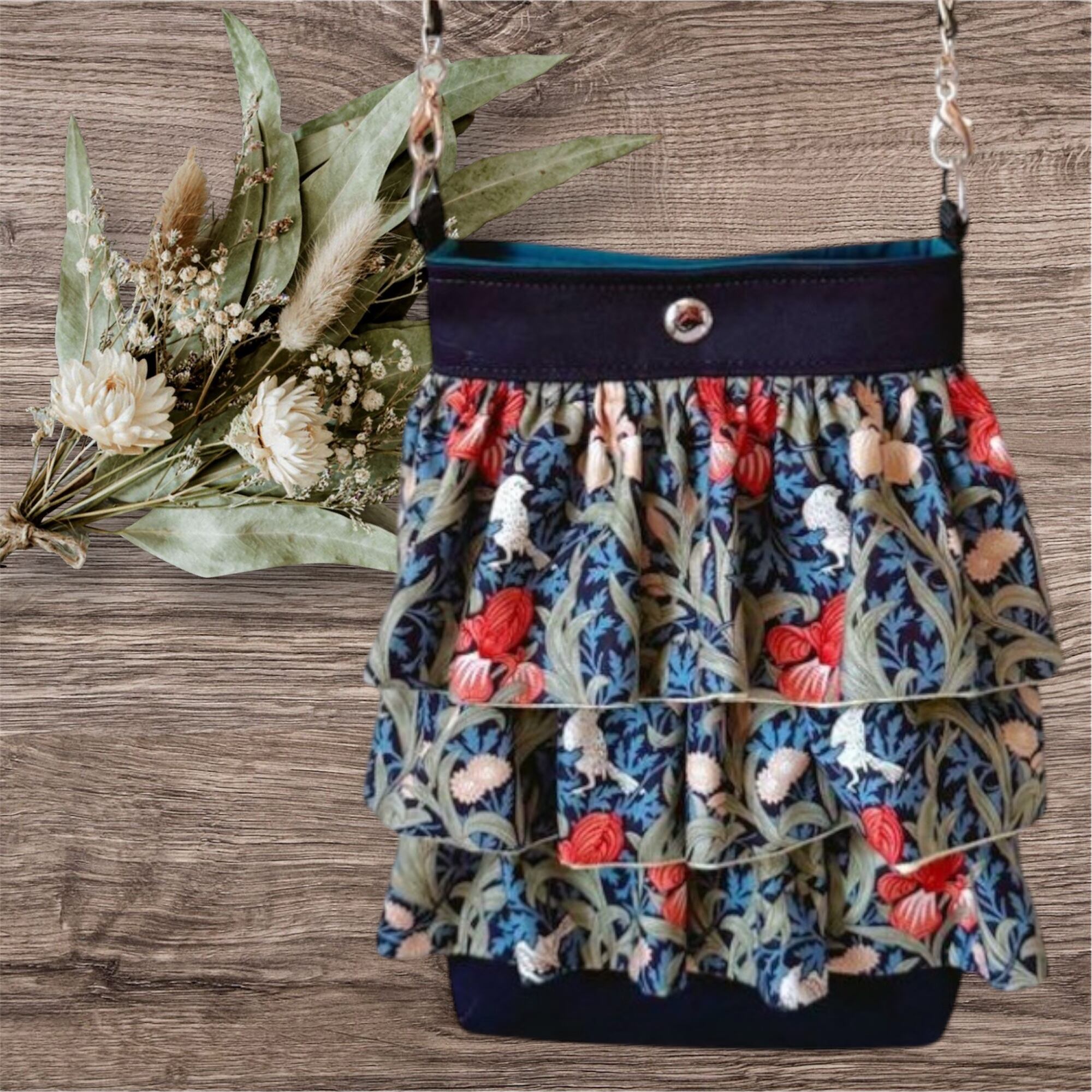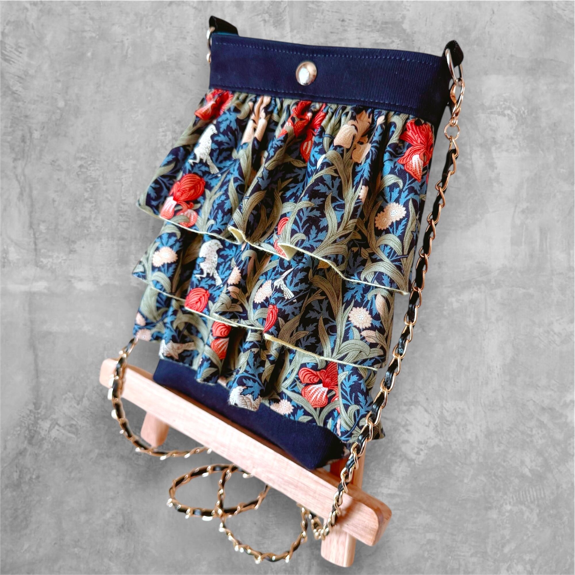フリル・背面ポケット…ウィリアムモリス アイリスネイビー