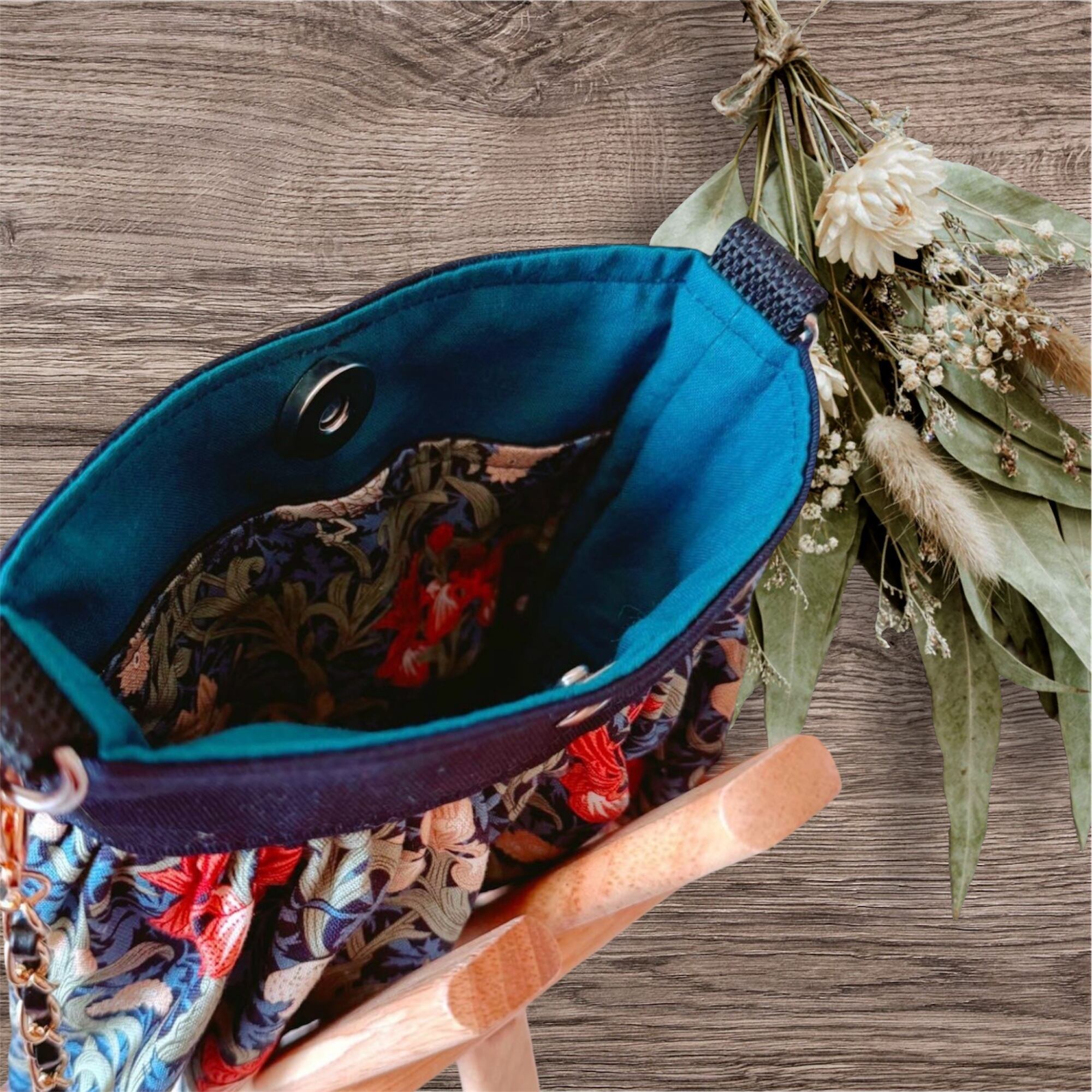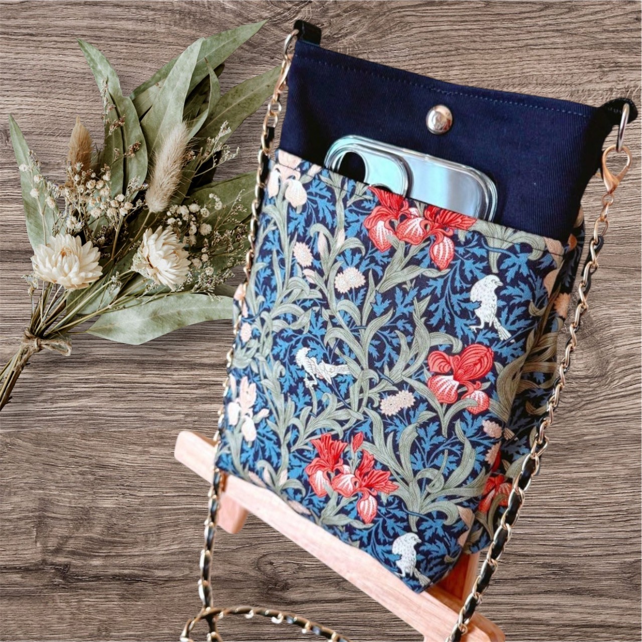 ハンドメイドスマホショルダー スマホポシェット スマホポーチ ウィリアムモリスアイリス ネイビー
