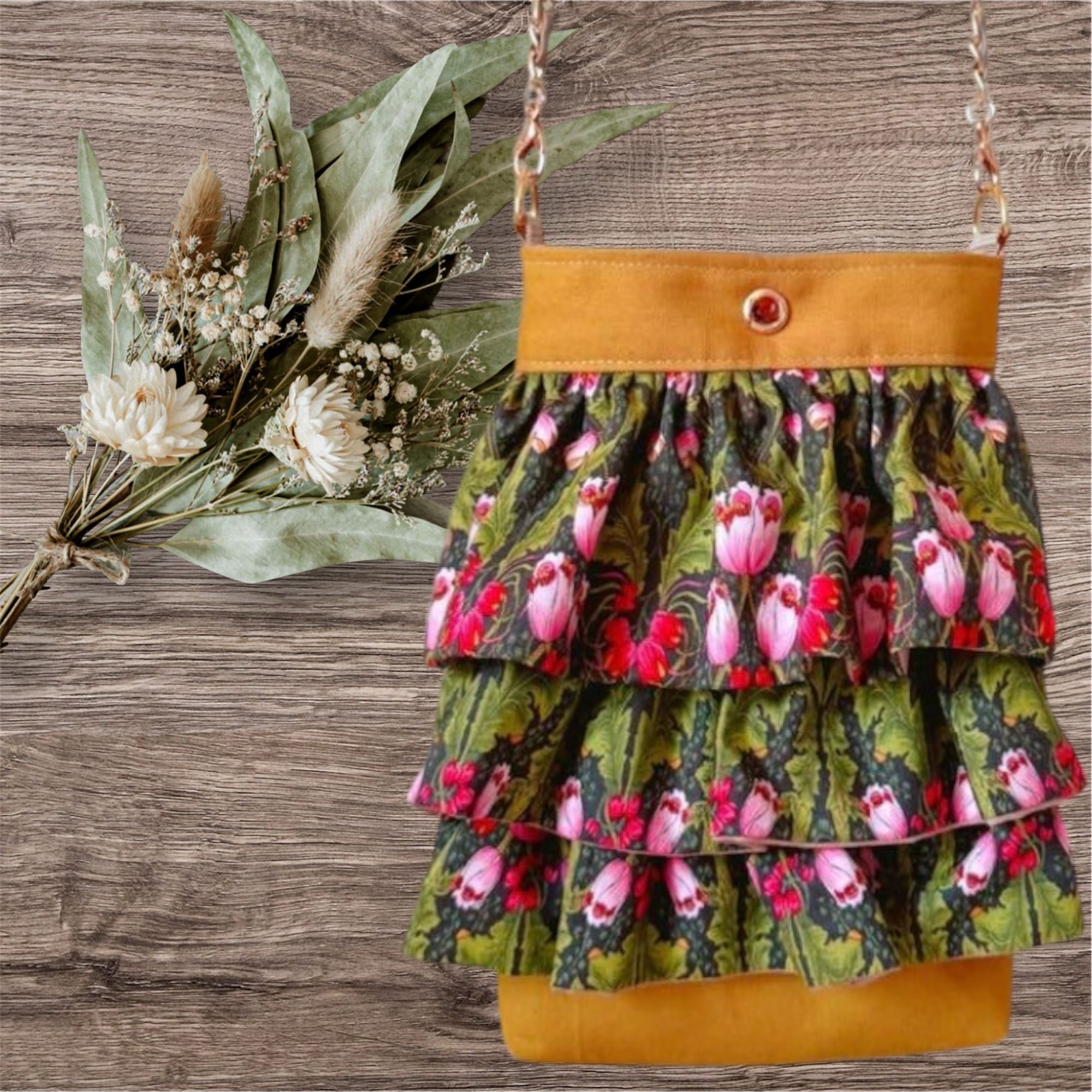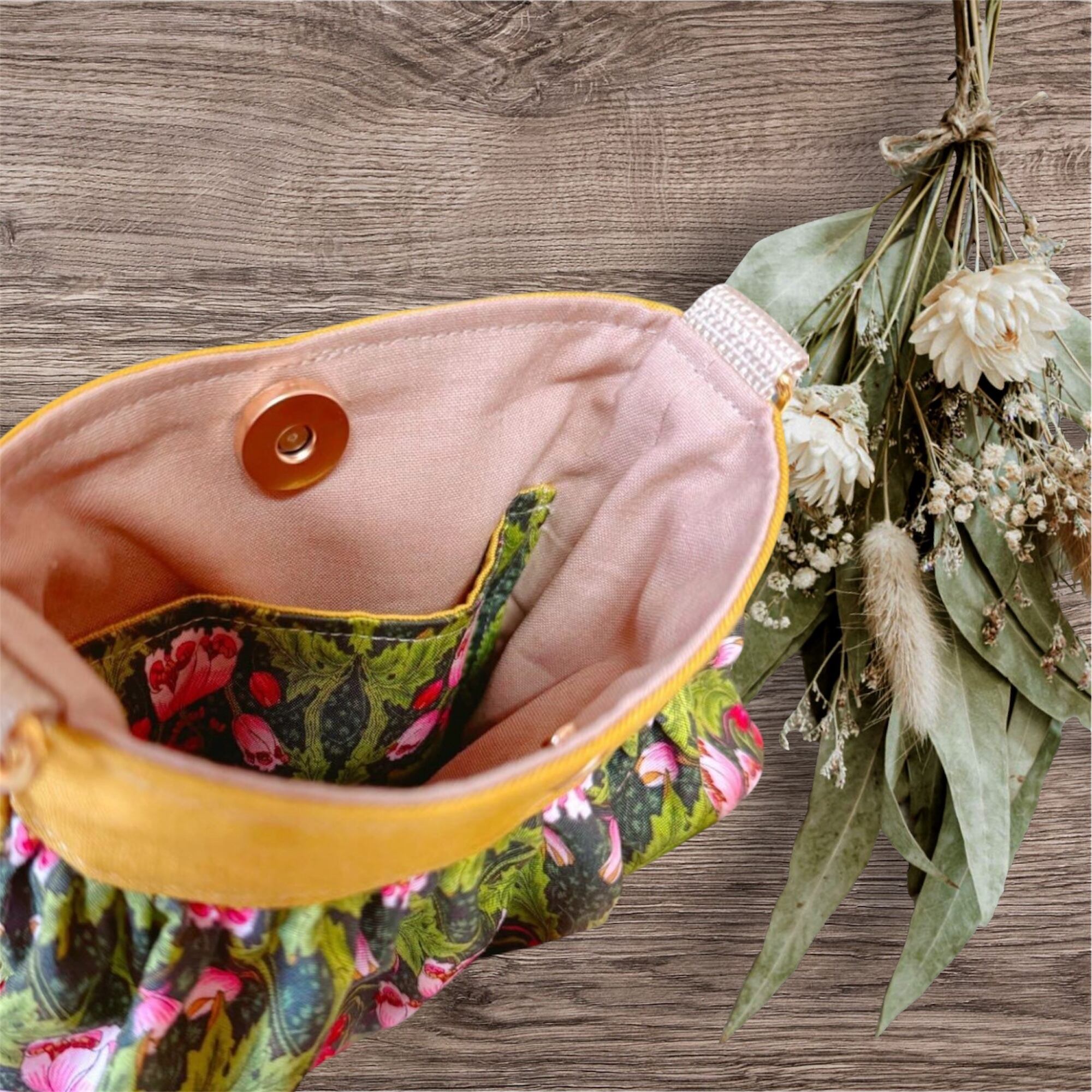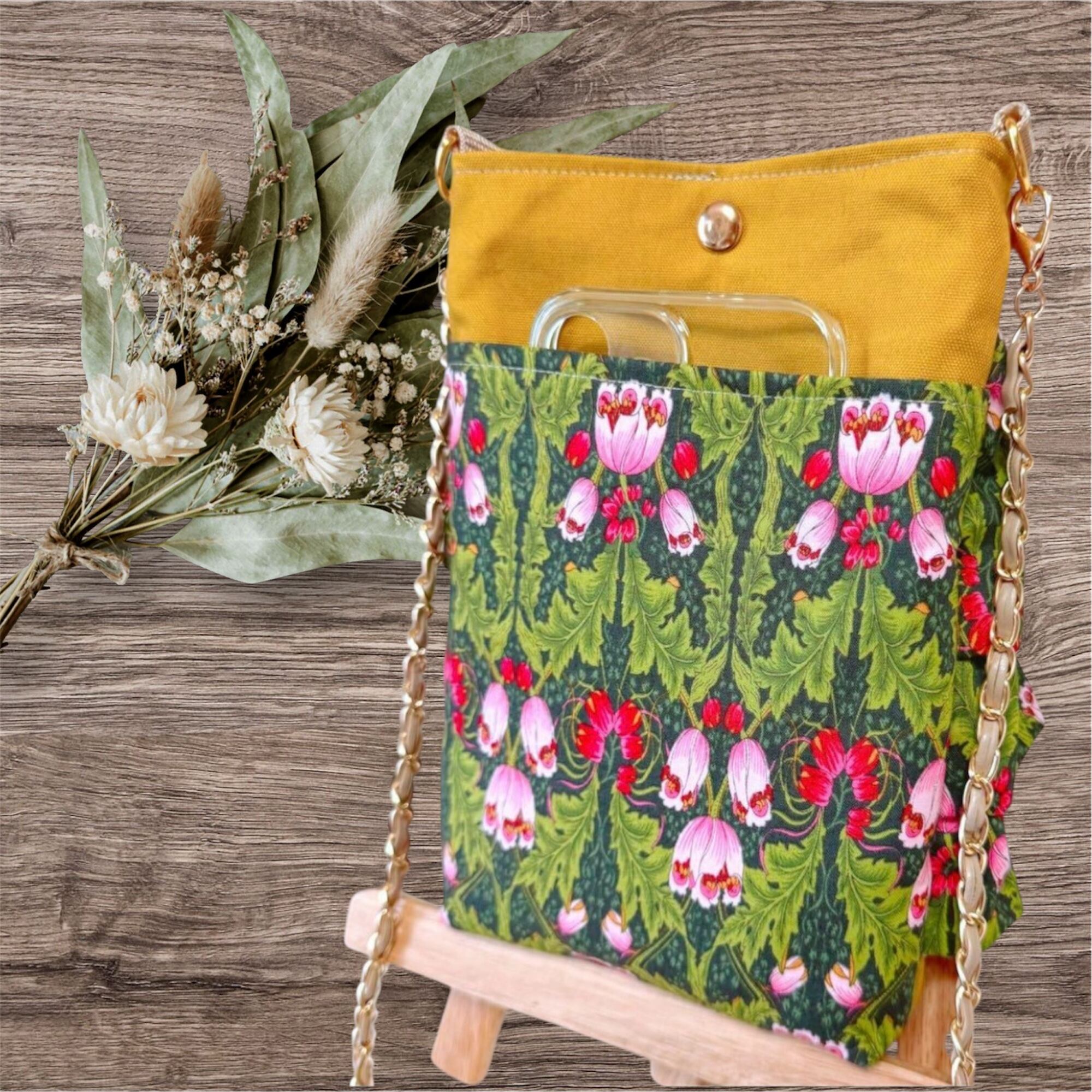ハンドメイドスマホショルダー スマホポシェット スマホポーチ 草花模様