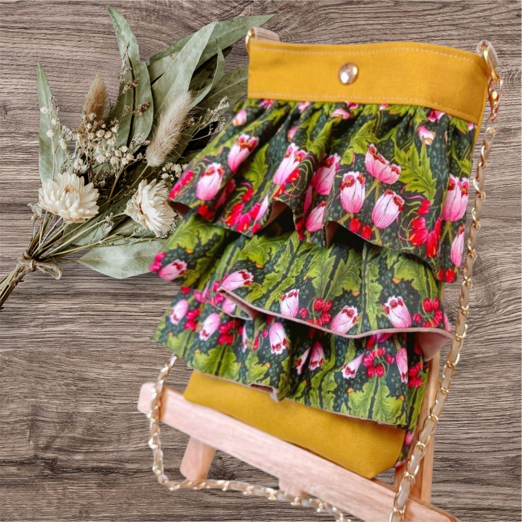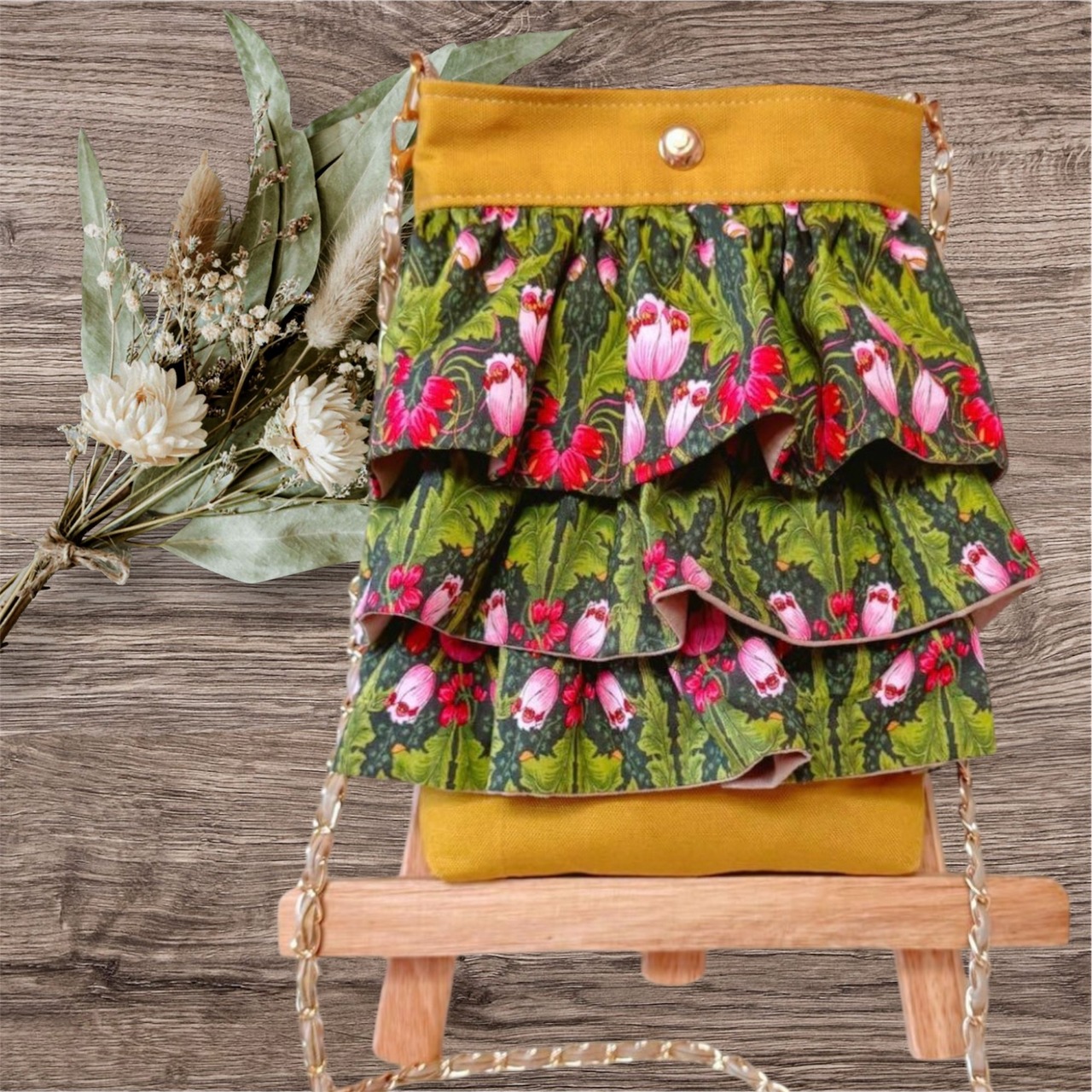 フリル・背面ポケット…草花模様