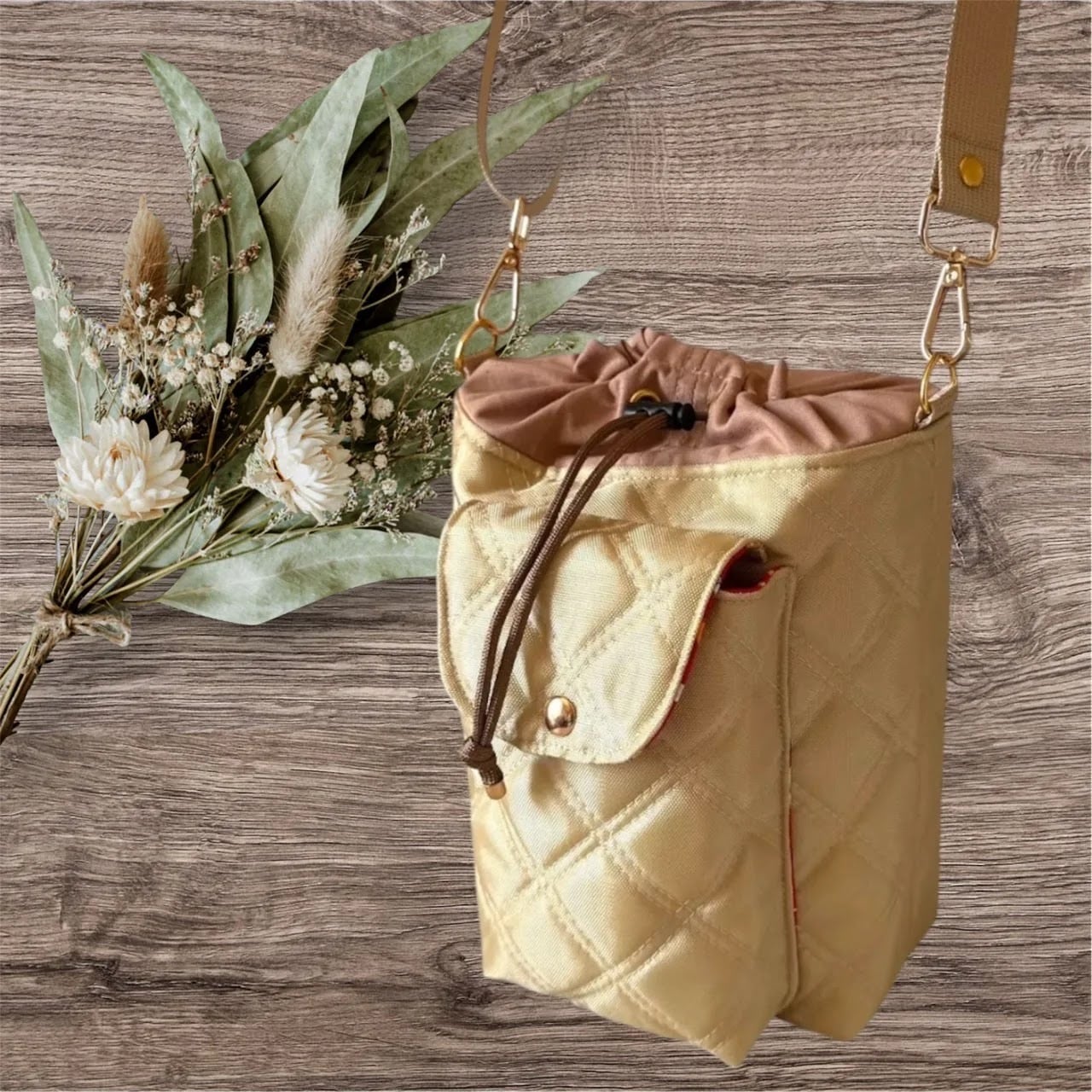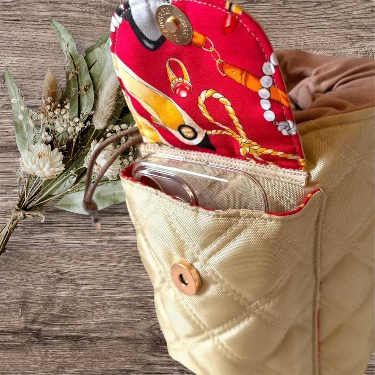 #ハンドメイド巾着ショルダーバッグ