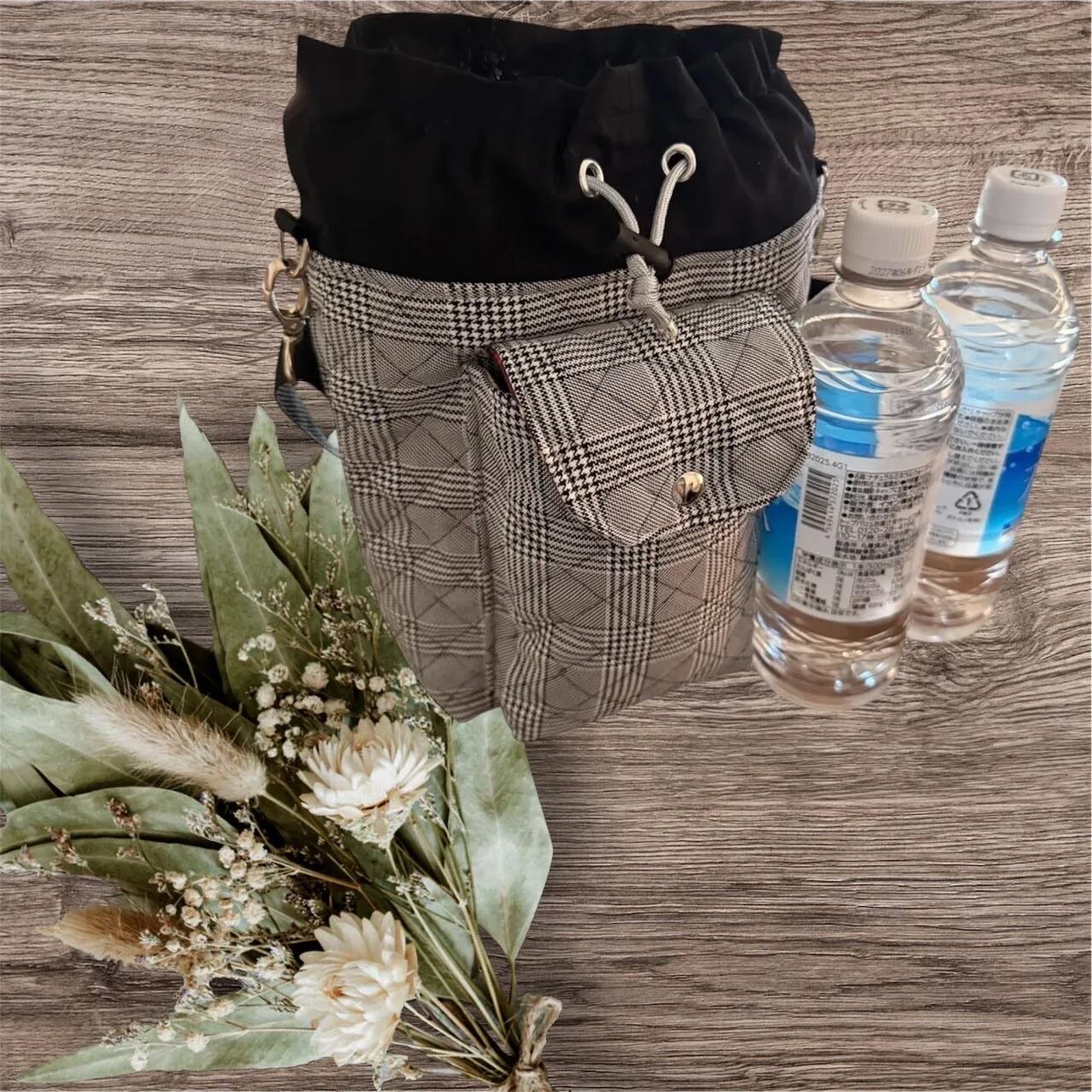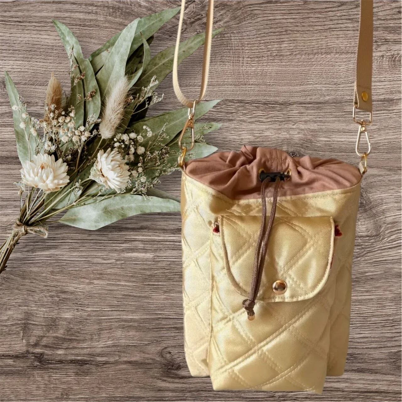 500mlのペットボトル2本がすっぽり入るコンパクトなサイズ感ですが、キルティングならではの軽量感で必要なものがしっかり収納できるのが魅力です♪