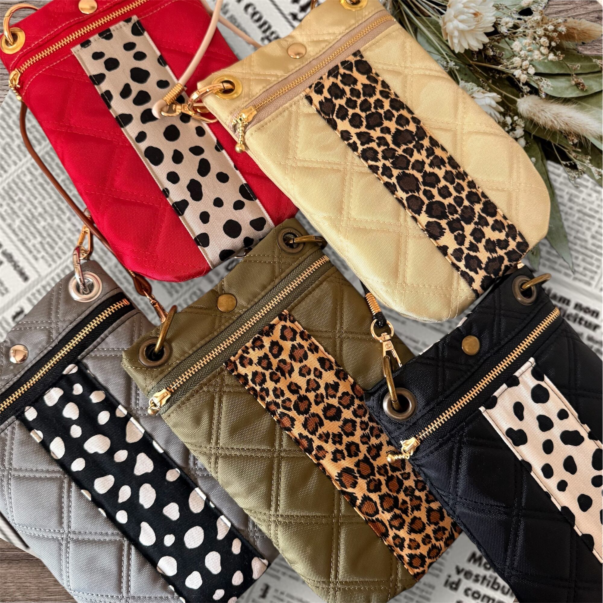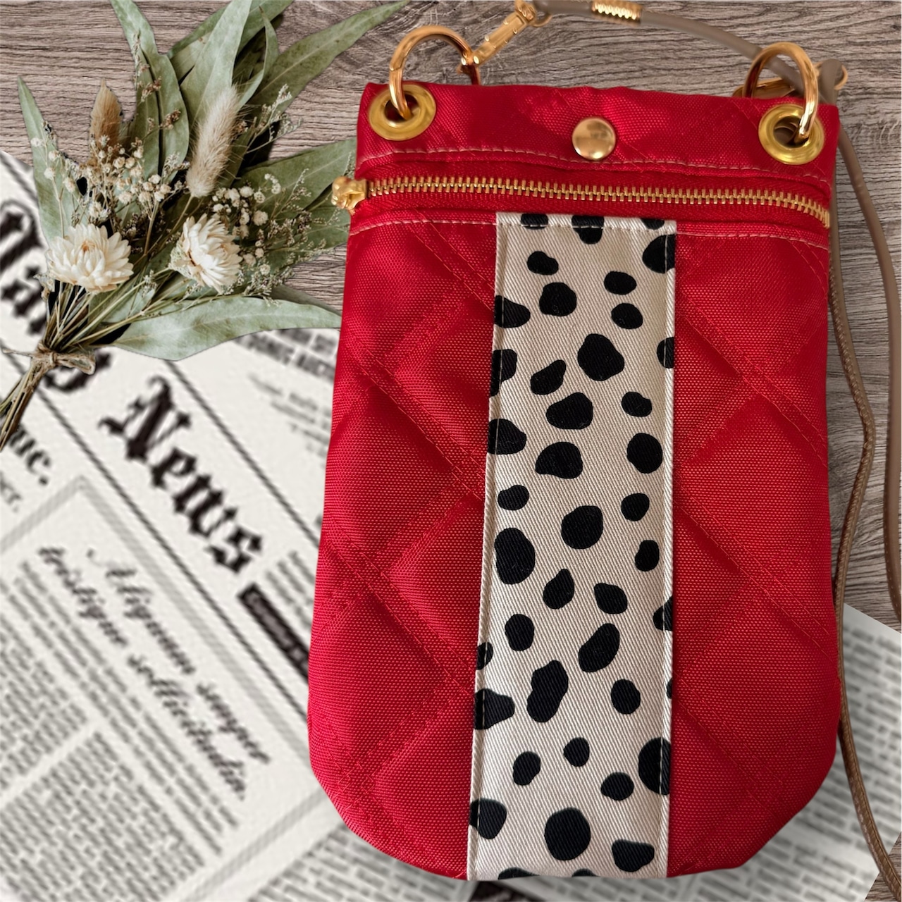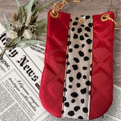 ハンドメイドスマホショルダー スマホポーチ キルティングスマホショルダー 軽量 ダルメシアン レッド