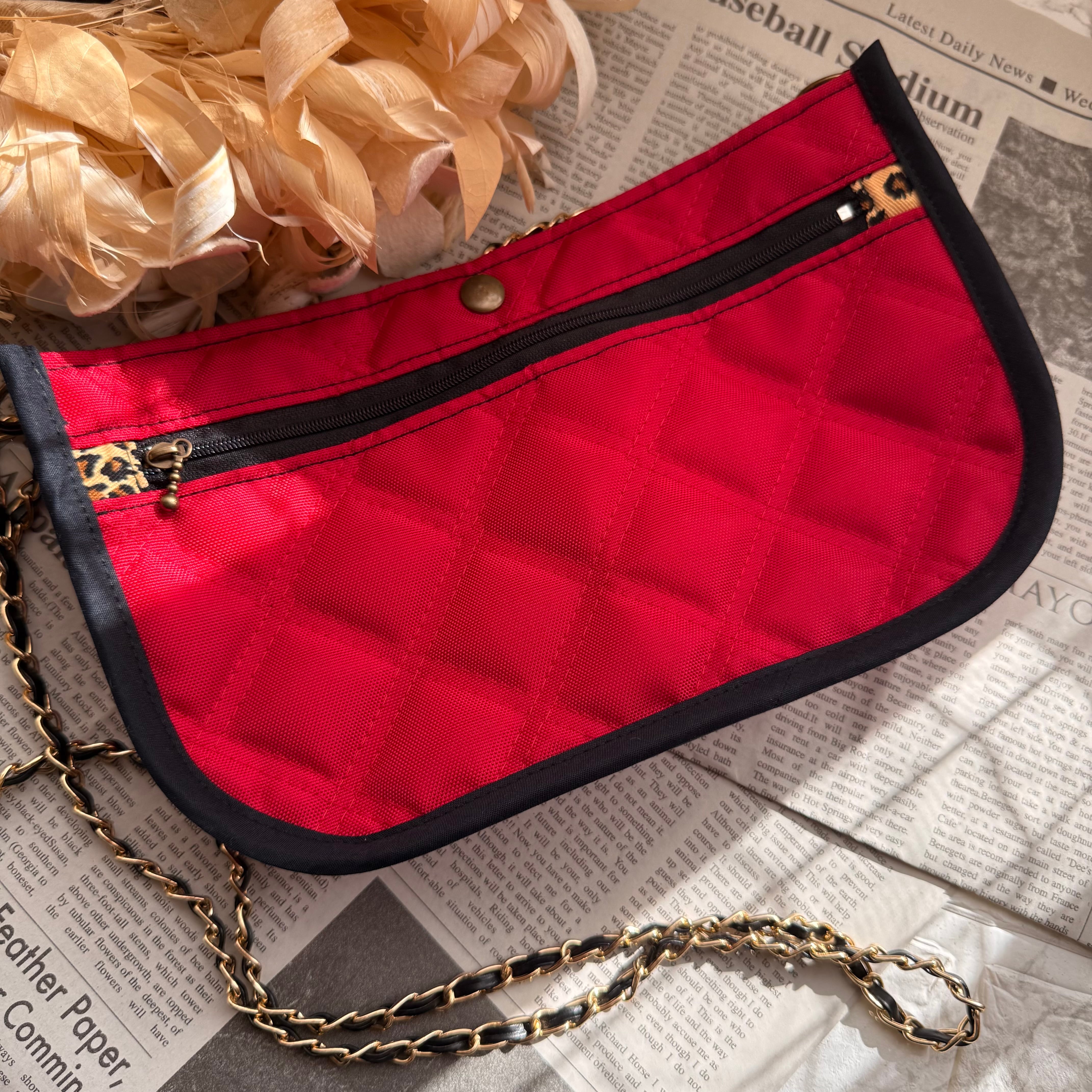 ハンドメイド キルティングショルダーバッグ キルティングポーチ スマホショルダー コンパクトサイズ 軽量 レッド