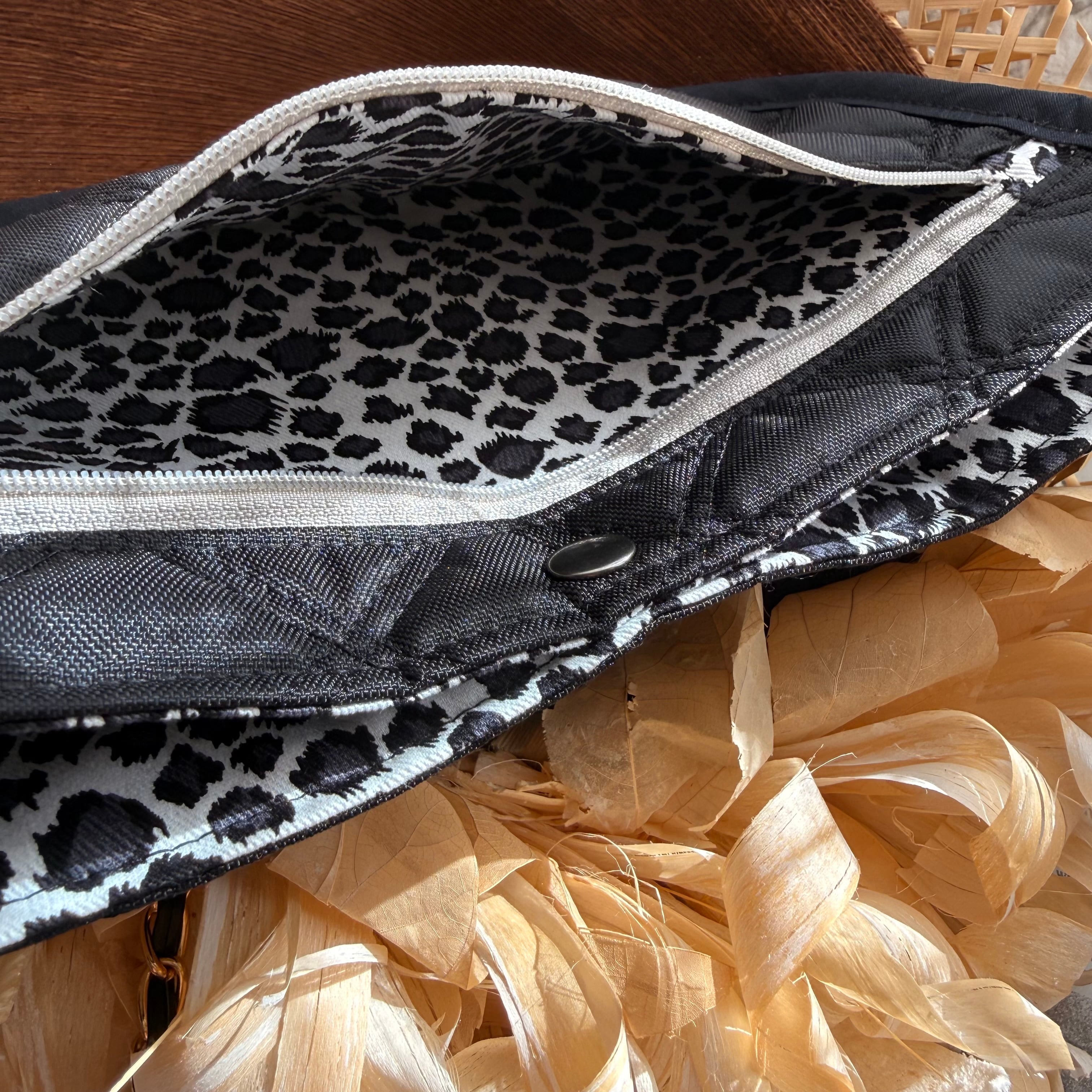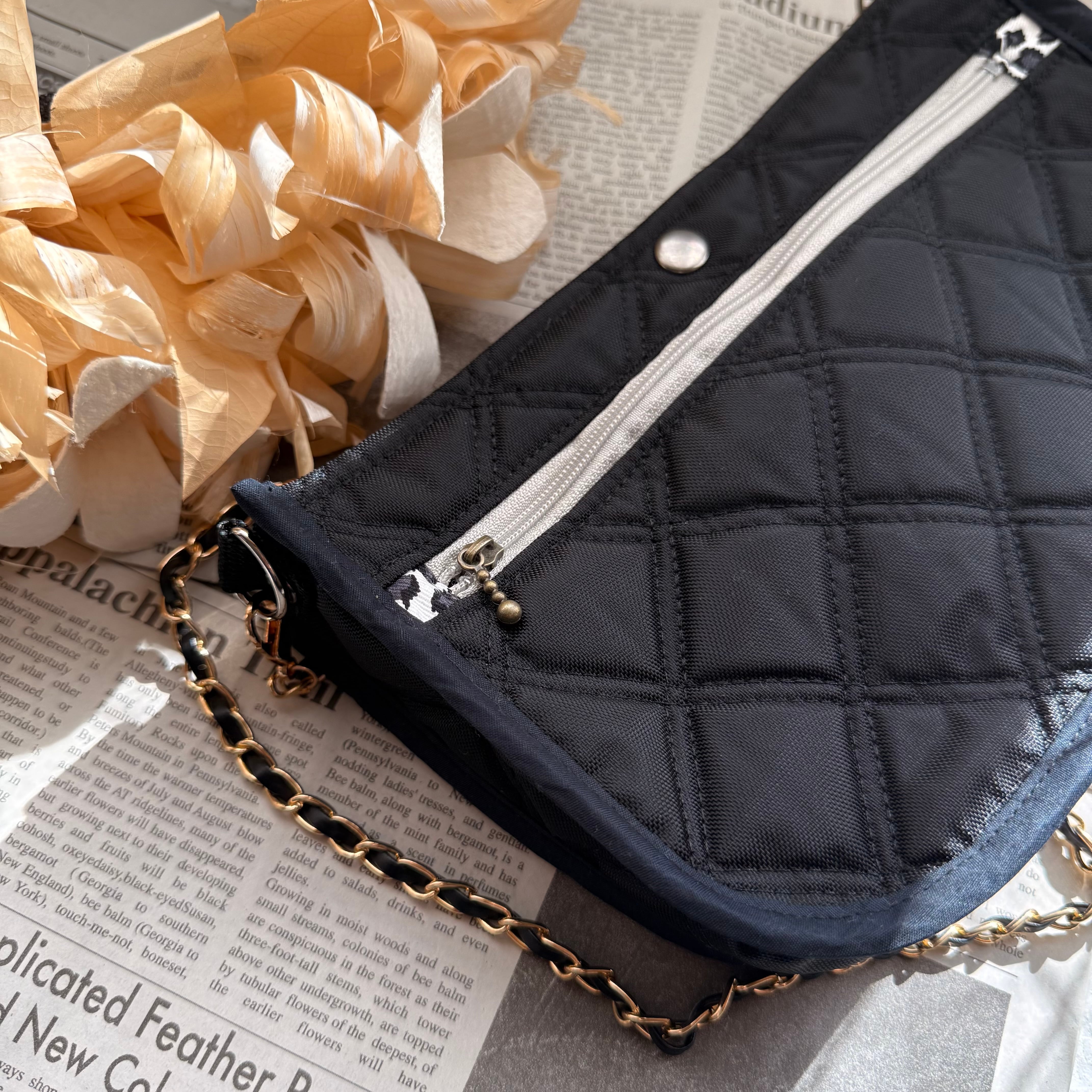 ハンドメイド キルティングショルダーバッグ キルティングポーチ スマホショルダー コンパクトサイズ 軽量 ブラック